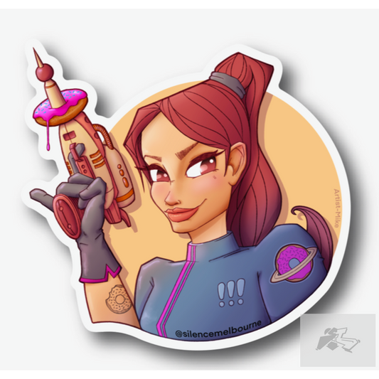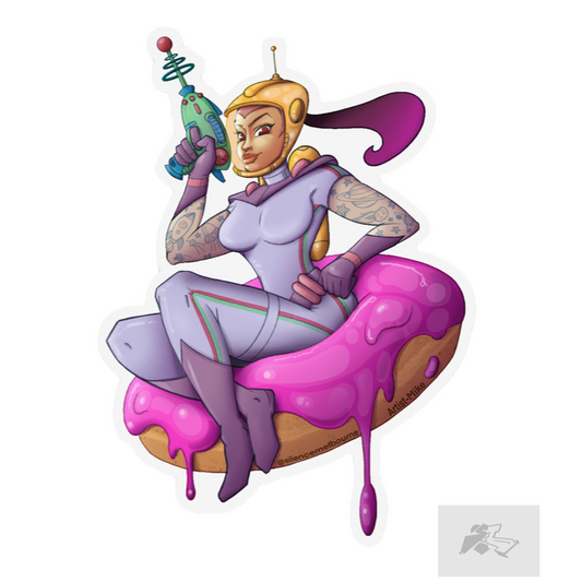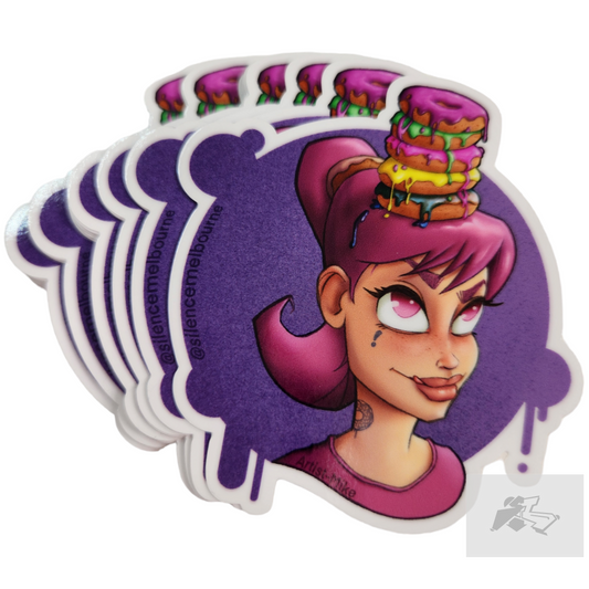 Lady with a stack of donuts on her head - die cut sticker, Poise